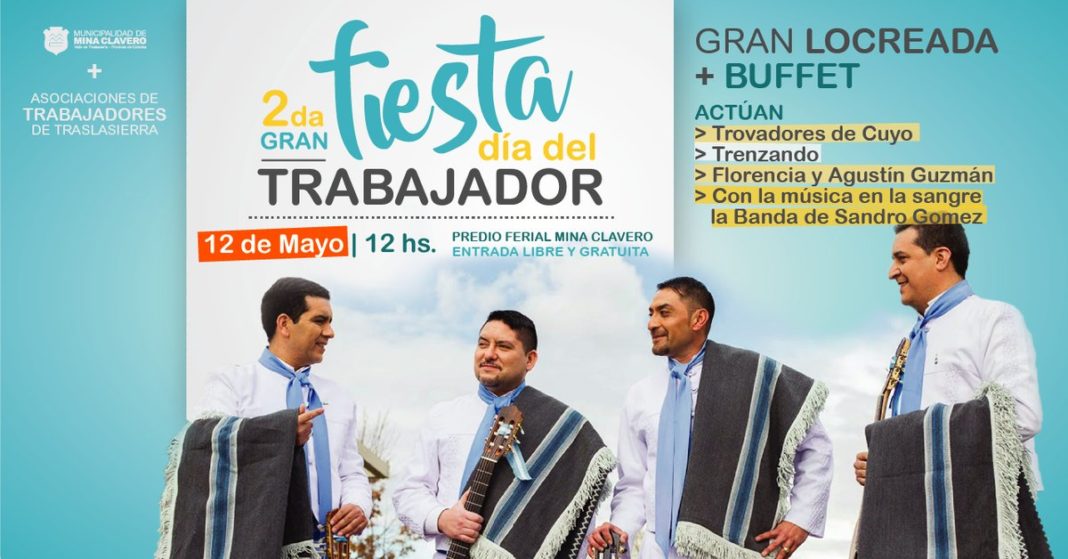 La Municipalidad de Mina Clavero y distintas Asociaciones de Trabajadores de la zona invitan a la 2º Fiesta por el Día del Trabajador, que tendrá lugar este sábado 12 de mayo, a partir de las 12 horas en el Predio Ferial ubicado en el acceso a sur a nuestra ciudad.
