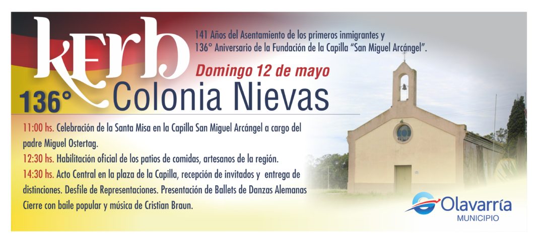 Este domingo 12 de Mayo se realizará la Fiesta de la Kerb en Colonia Nievas, que en sus orígenes guarda un profundo sentido religioso, que se une con las costumbres típicas, que forman parte de la identidad de la comunidad.